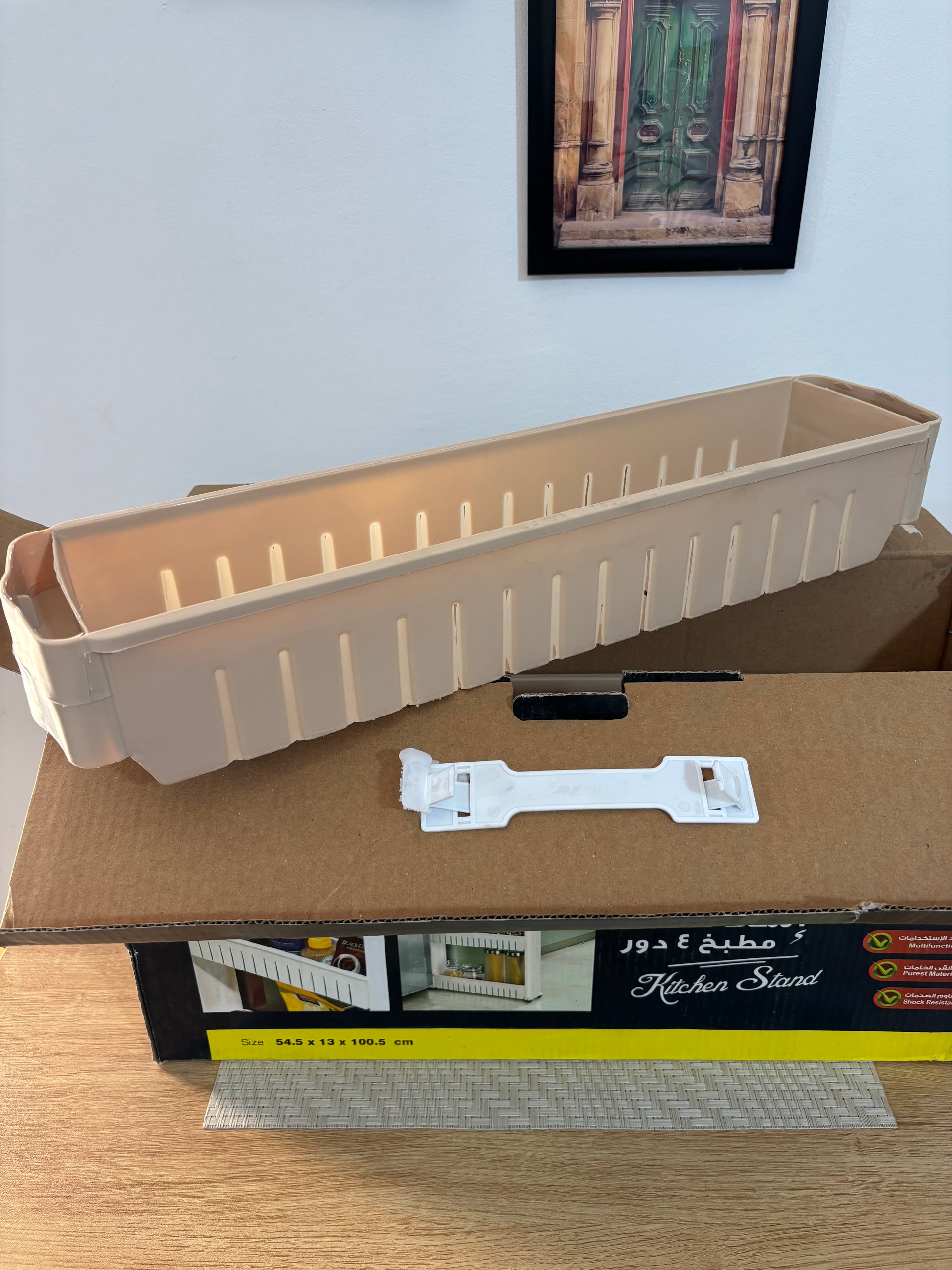 تربو ومنظم ومزود بعجل لسهول التنقل والتحرك 4 دور بلاستيك براند الوطنية عملى جدا هيساعدك فترتيب الصوصات وازايز الزيت وكل البرطمانات للمطبخ وللحمام في ترتيب المساحيق وازايز الشاور وادوات التنظيف غير انه موفر للمساحة ولا ياخذ حيز في المكان+9