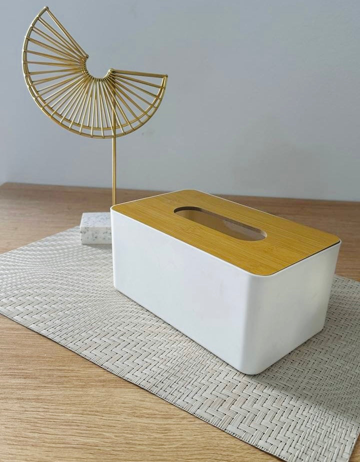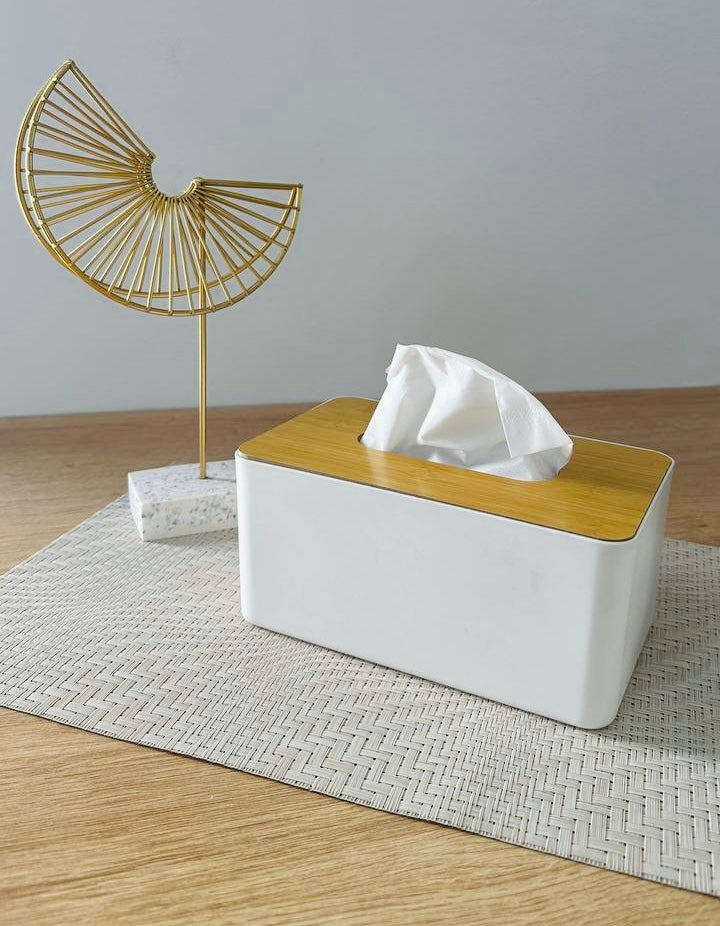 ارتقِ بديكور منزلك أو مكتبك مع صندوق المناديل الفاخر هذا. يجمع التصميم بذكاء بين الجزء االابيض الاكريليك والغطاء الخشبي الدافئ ليمنحك قطعة عملية وأنيقة في آن واحد.