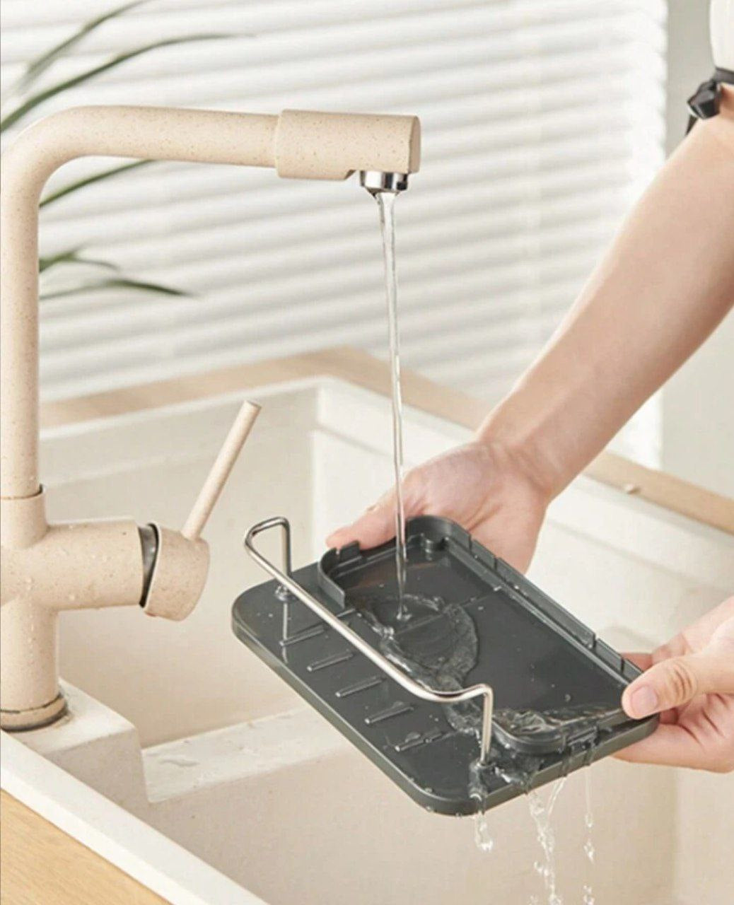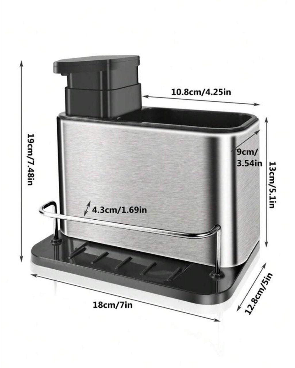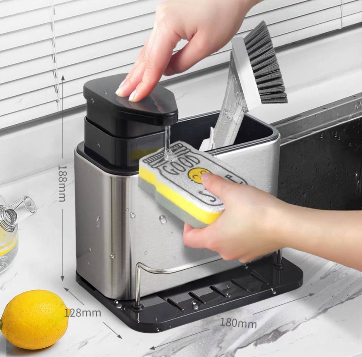 ديسنسر وموزع صابون المطبخ وصفاية معالق وحامل ليفة مطبخ قطعه متعددة الاستخدام وعملية جدا وشكل شيك ومميز على حوض المطبخ