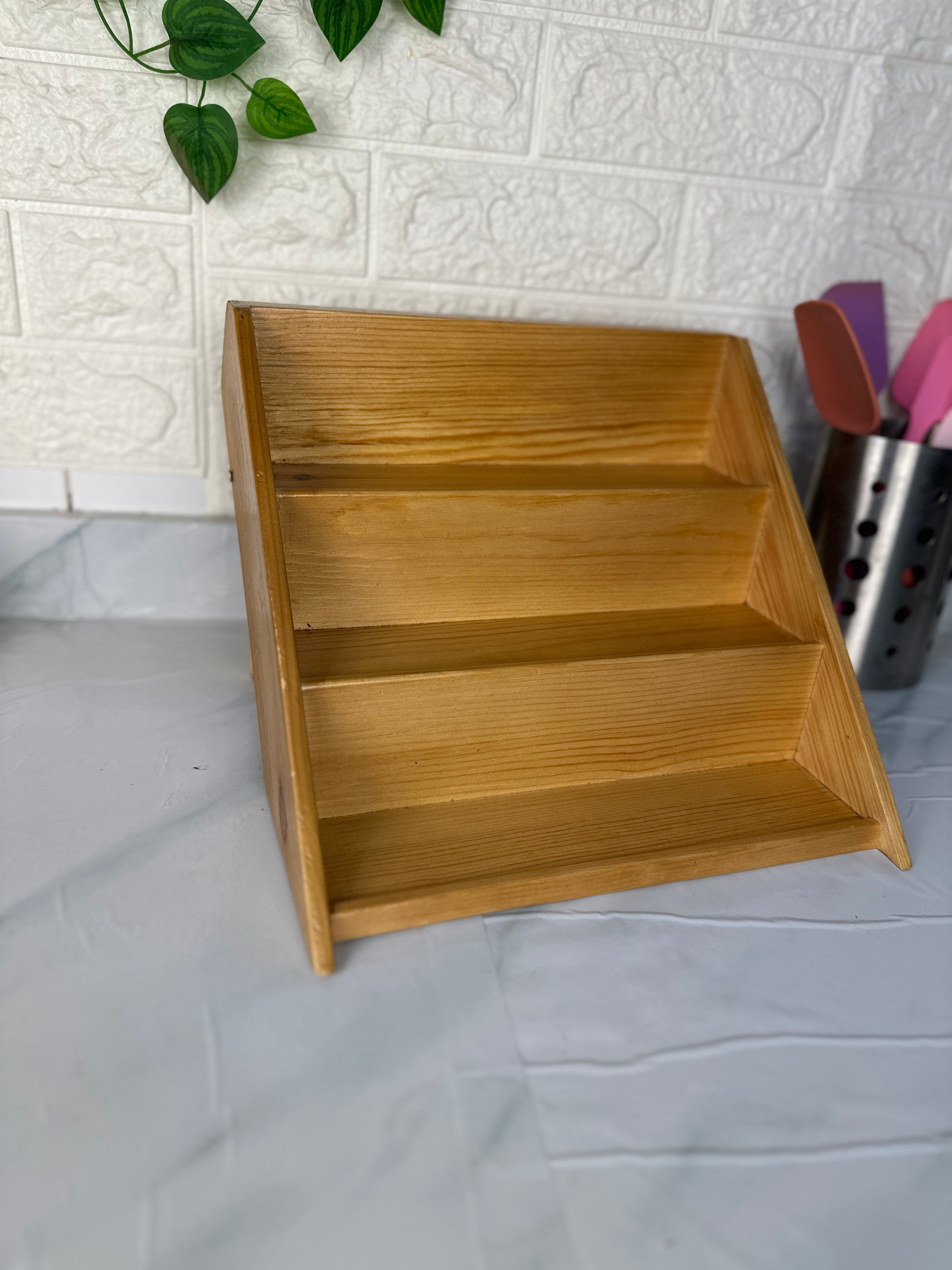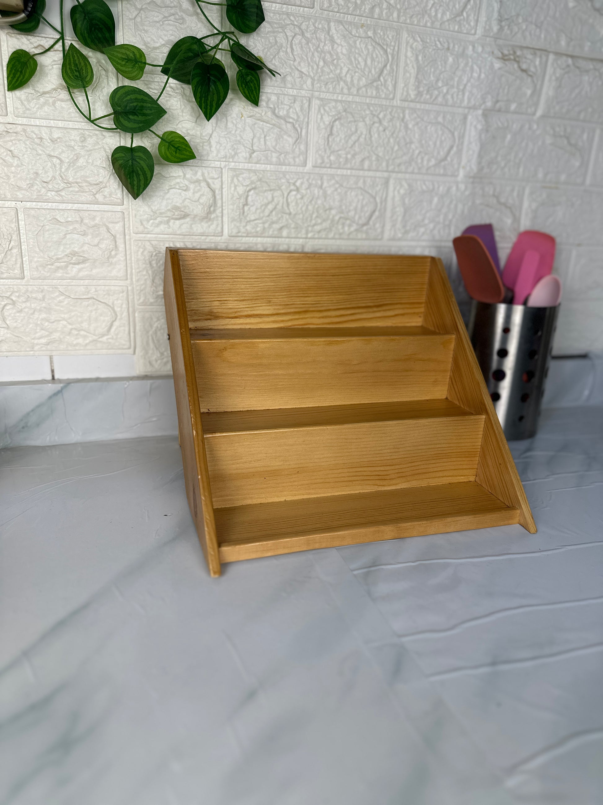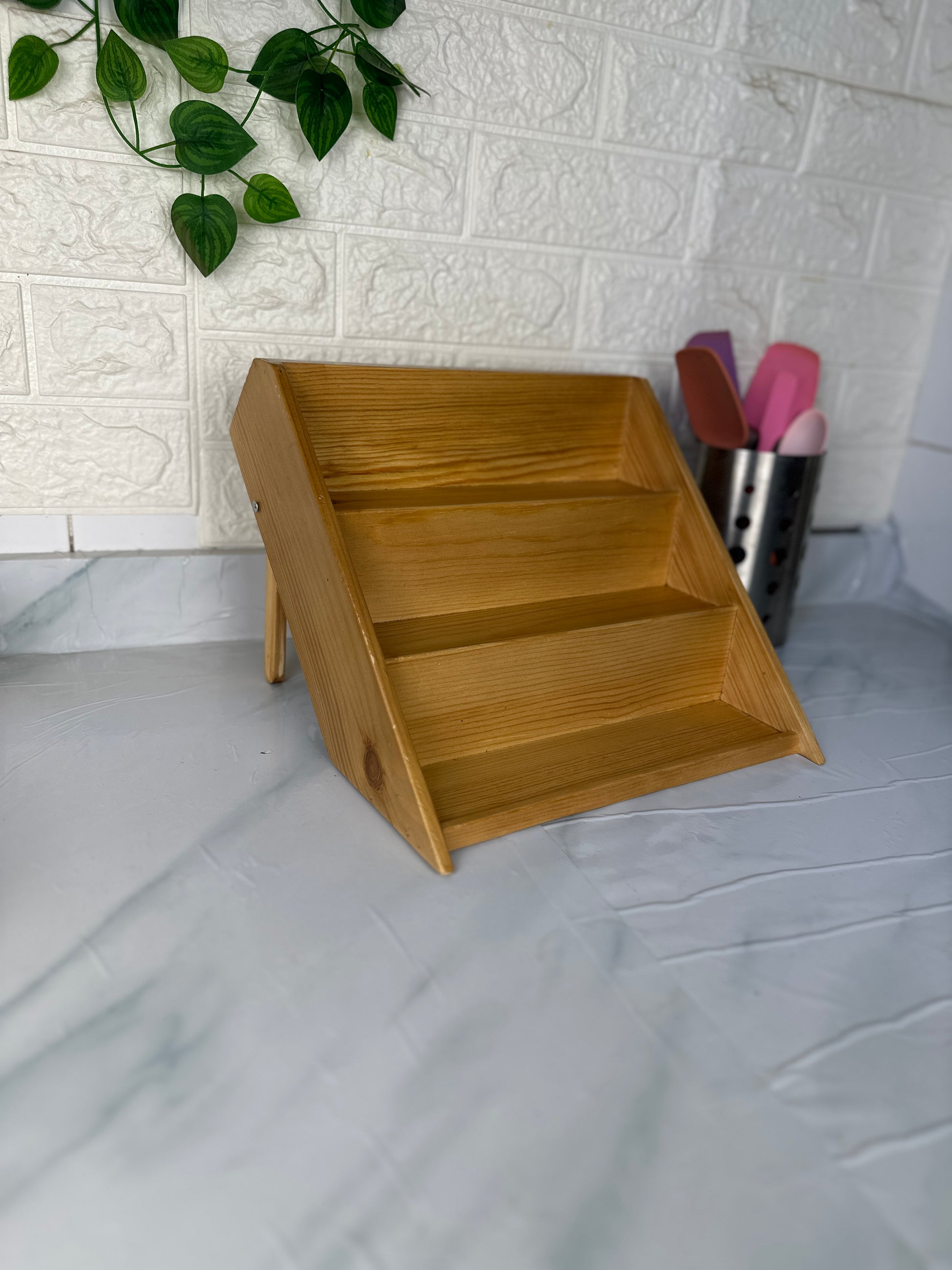 استاند وسلم ومنظم خشب مناسب لترتيب برطمانات التوابل او منتجات كوفي كورنر