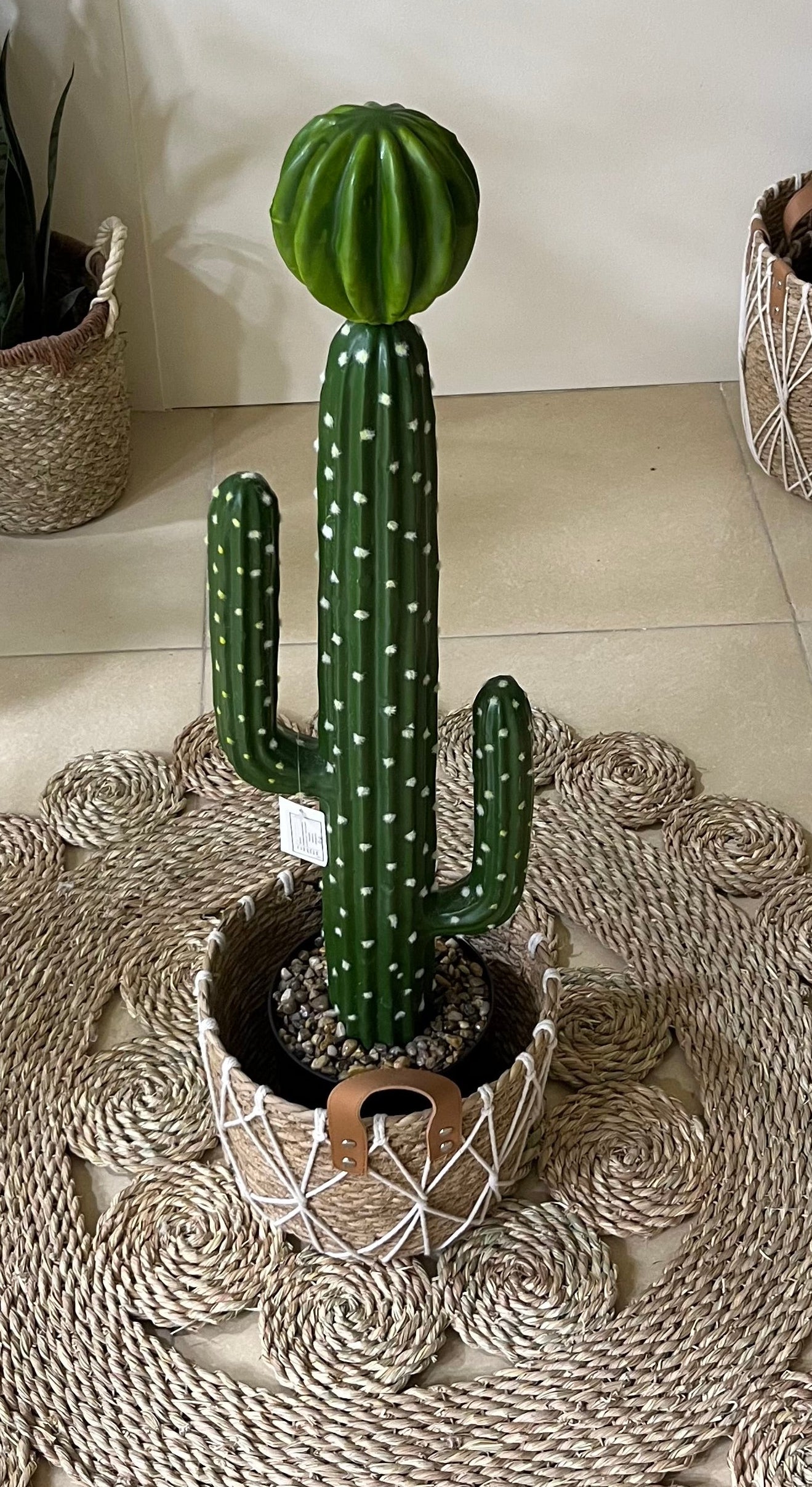 صبارة صناعي مماثلة للصبار الطبيعي تاتي ببوت اسود خاص بيها وبداخله احجار وزلط مناسبه جدا لديكور داخل المنزل وامنه جدا ع الاطفال