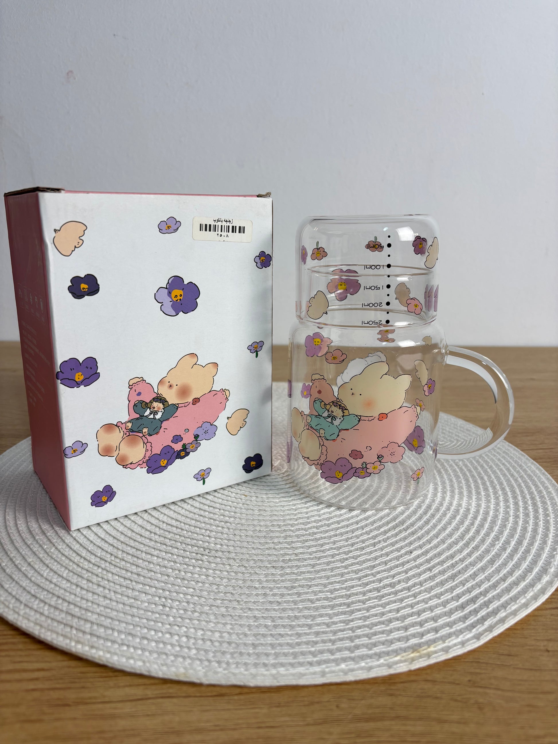 الكوب مزود بتدريج قياس خارجي (من 50 مل إلى 250 مل) لمساعدتك على متابعة كمية شربك للماء أو تحضير مشروباتك المفضلة بدقة.