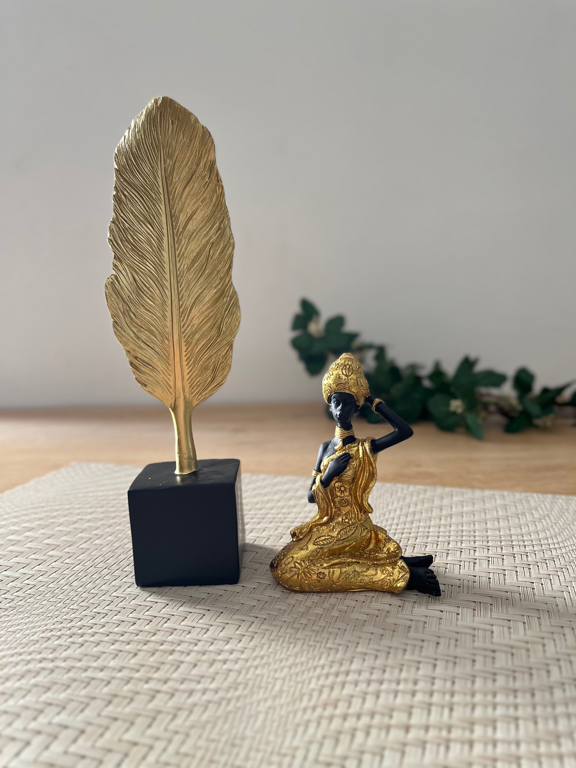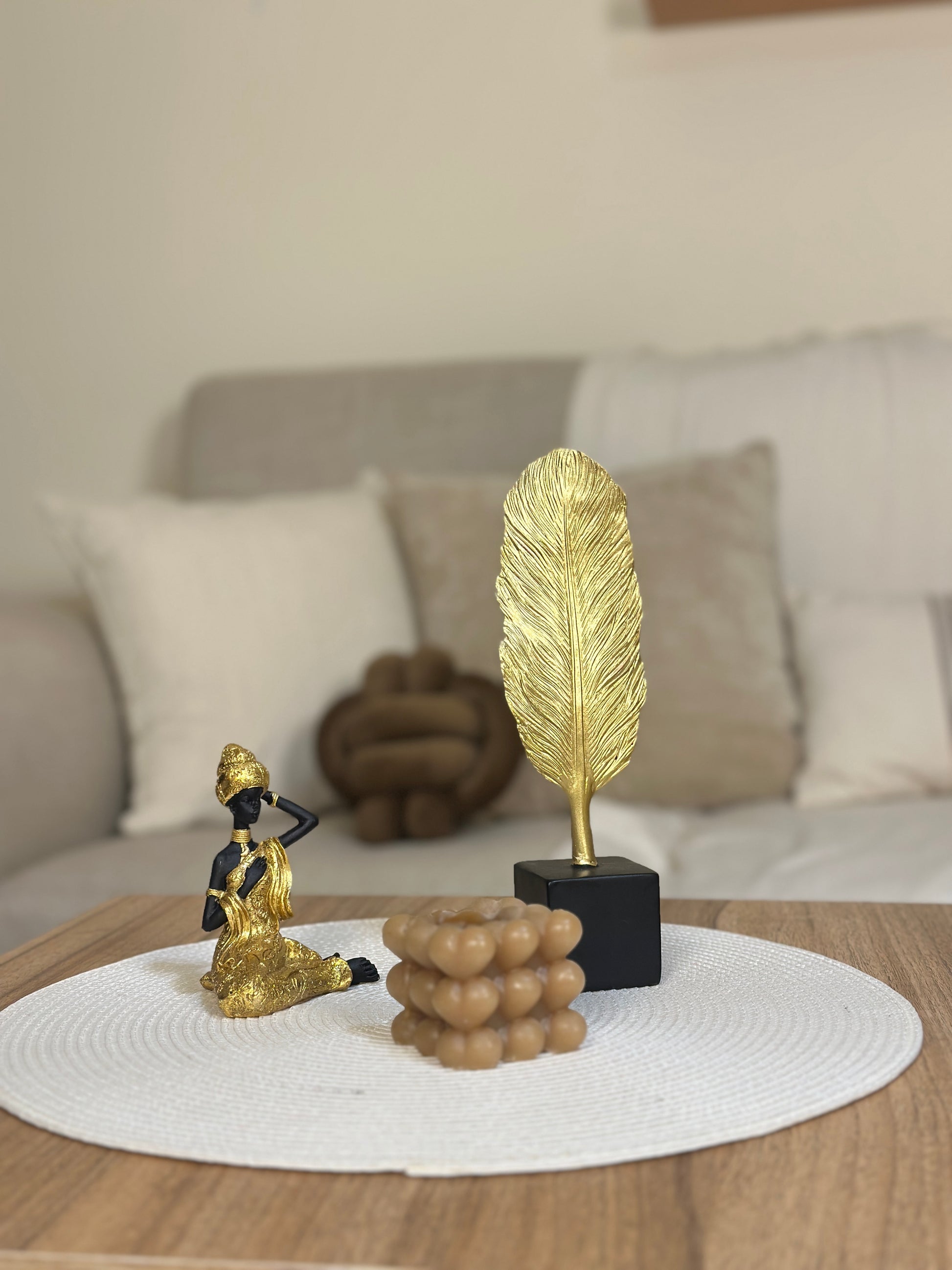 طقم مكون من قطعتين ديكور متكامل من ريشة جولد طويلة وديكور شكل الست الافريقية مستوحاة من الاستايل البوهيمي