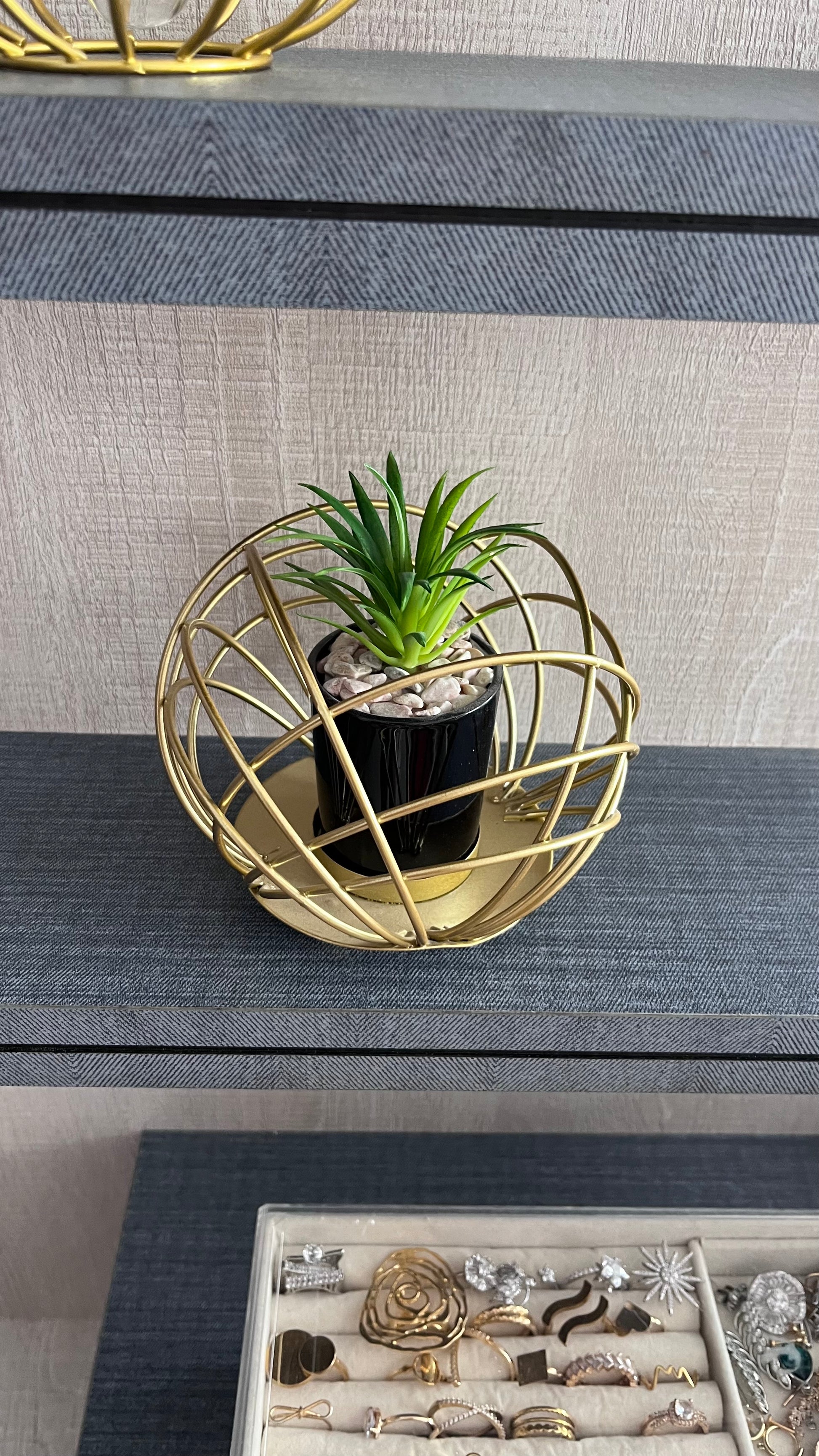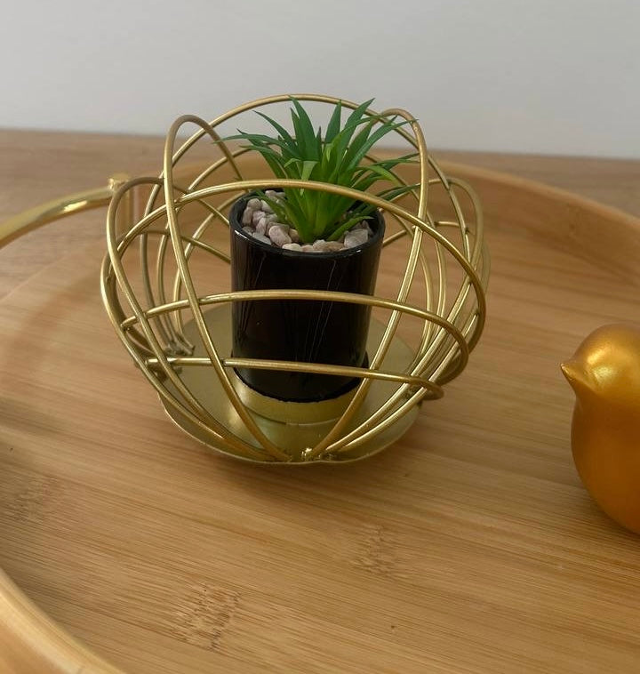 فازة جولد معدن بزرعه صناعية مناسبه للديكورات والمكتب والارفف و اختيار رائع كهدية منزل جديد أو هدية لمكتب عمل جديد.