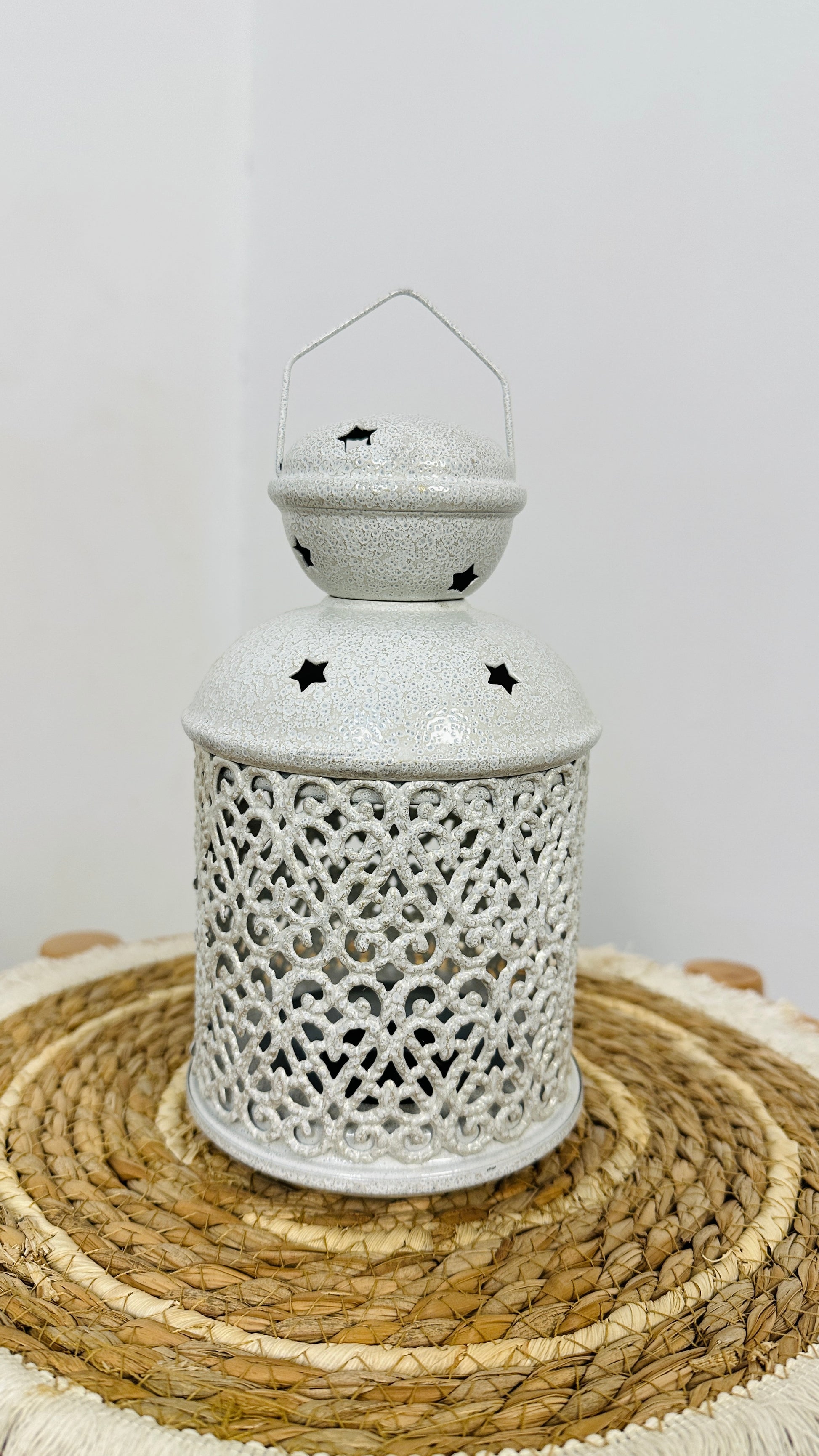 فانوس معدن شكل سداسي لون ابيض حجم كبير