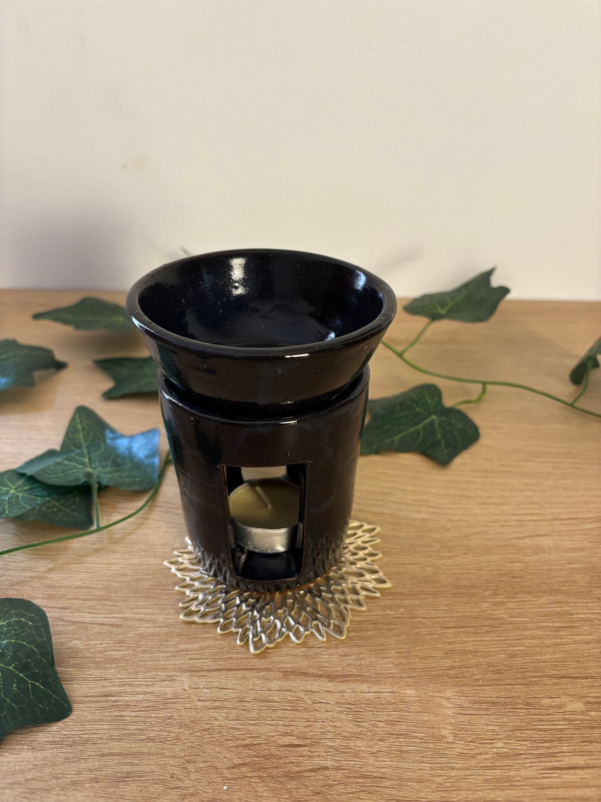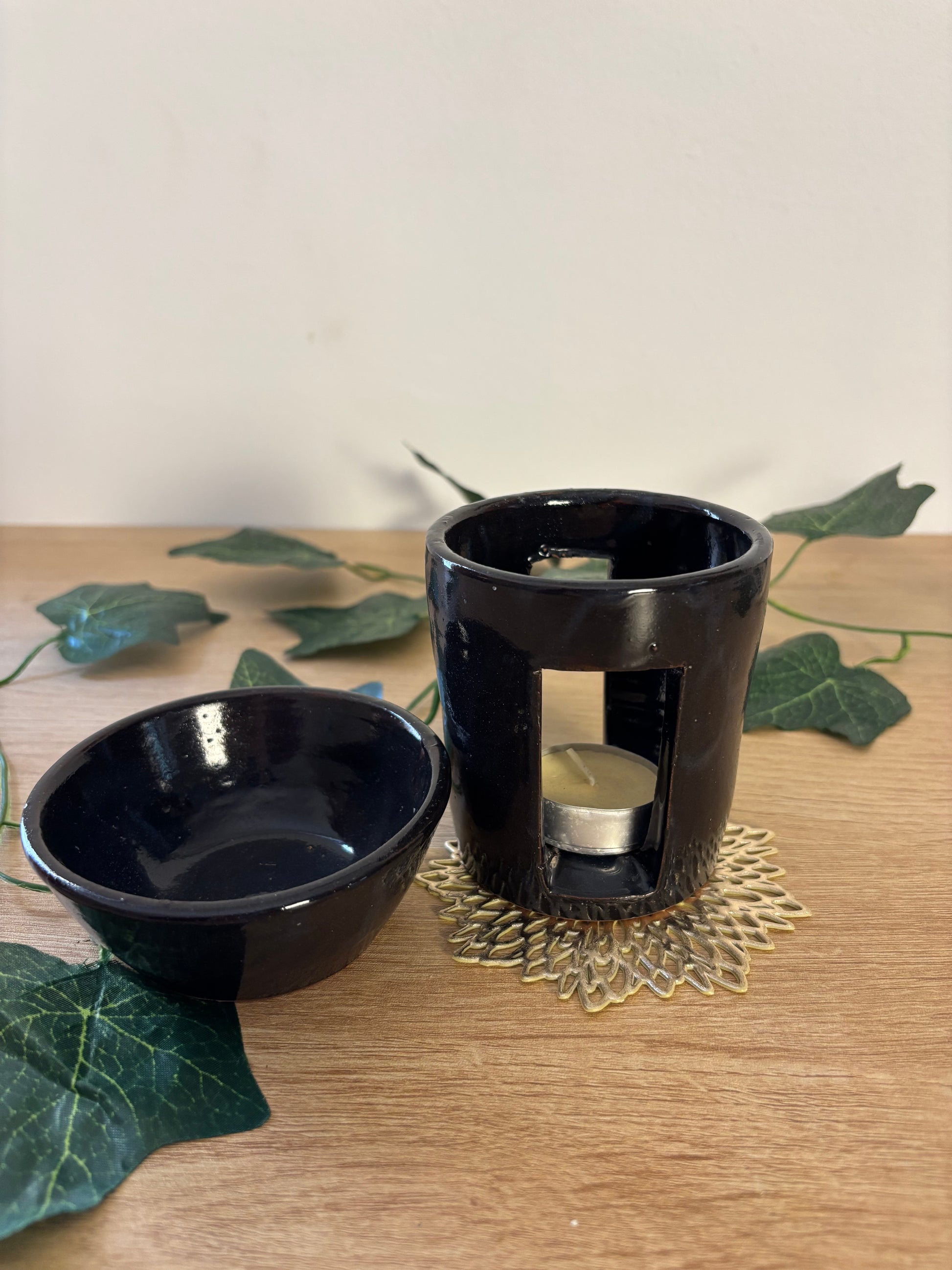 فواحة فخار لون اسود للزيوت العطرية والشموع wax melt تشتغل ب تي لايت