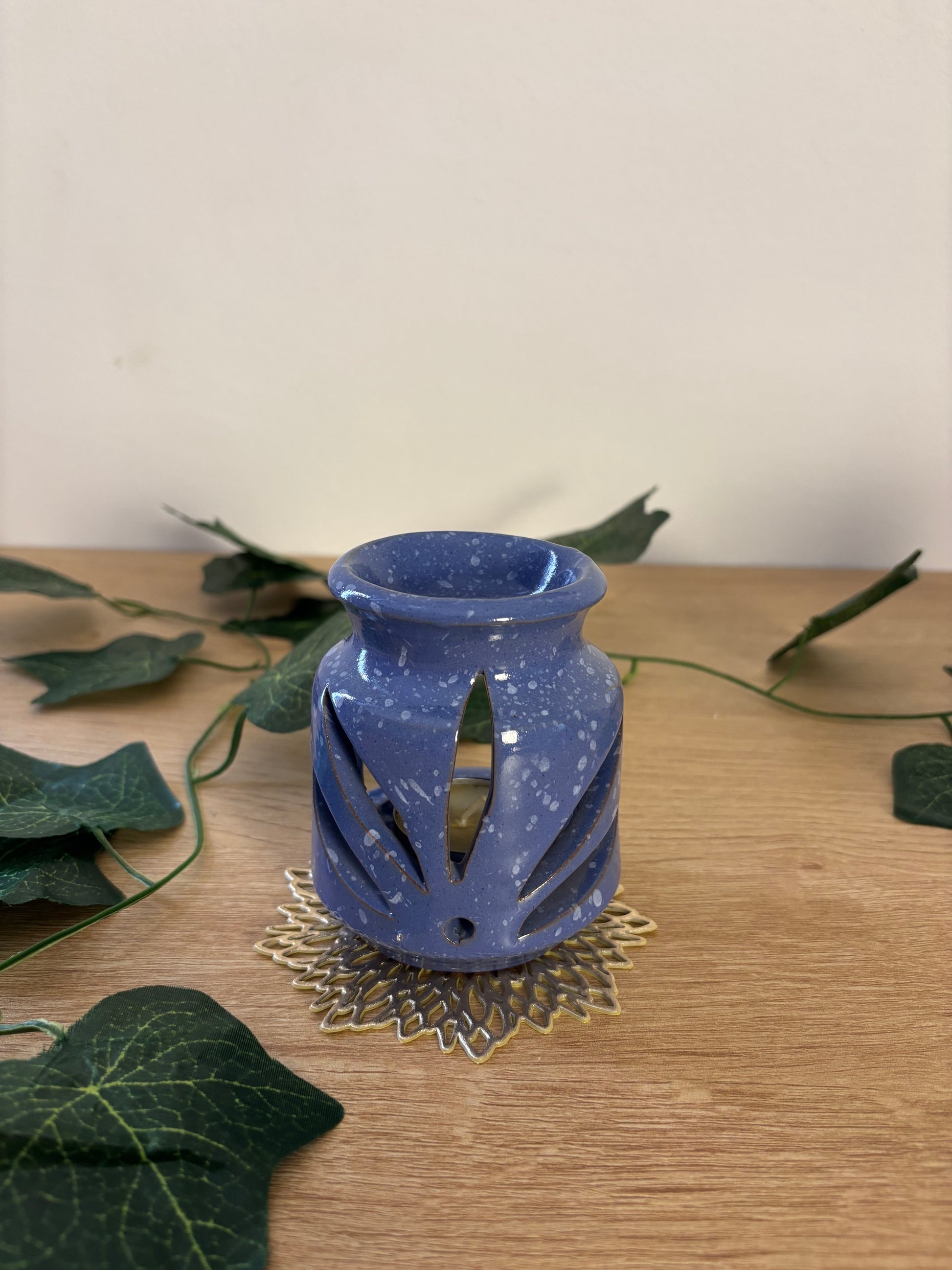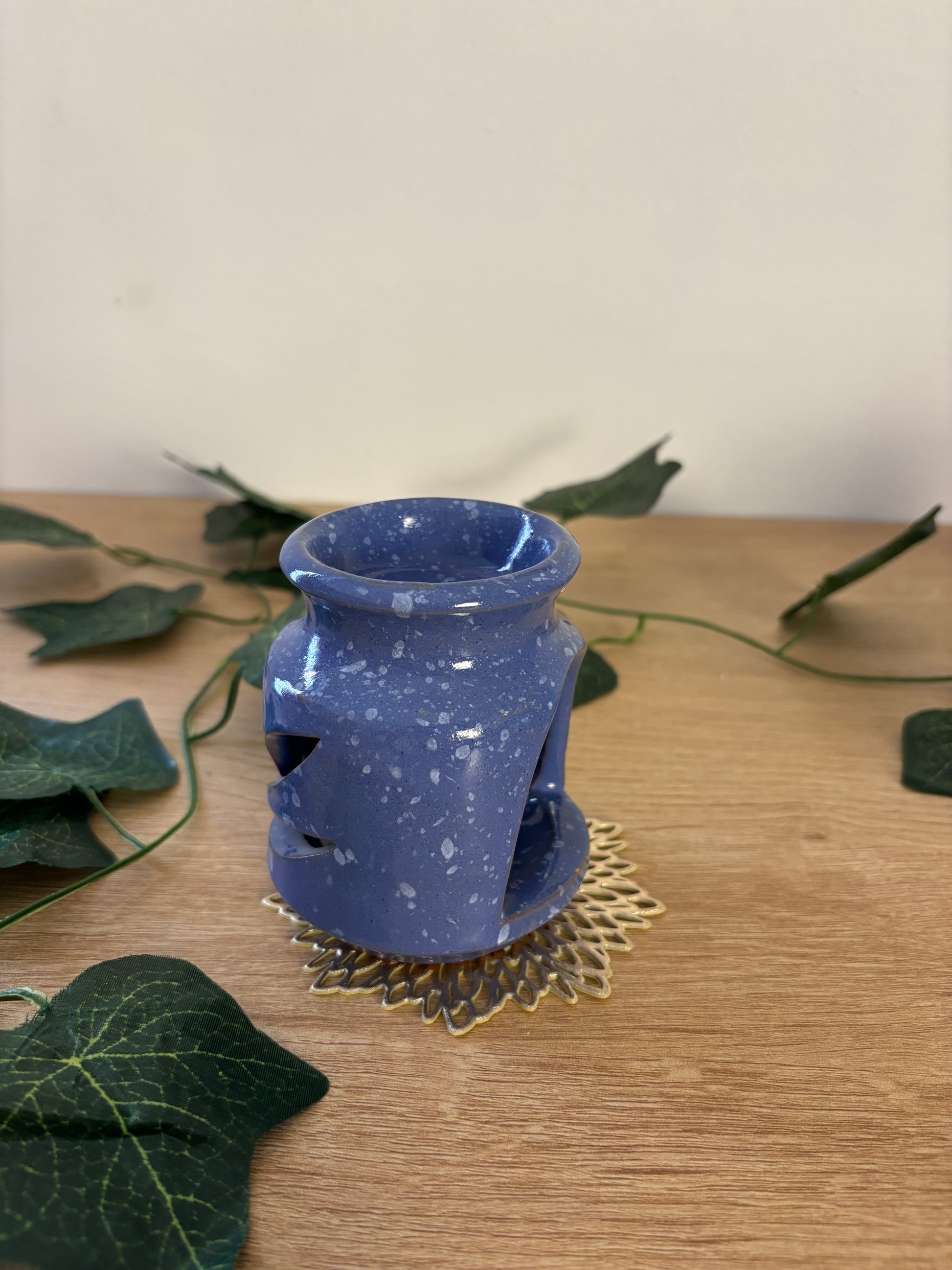 فواحة فخار لون موف للزيوت العطرية والشموع wax melt تشتغل ب تي لايت