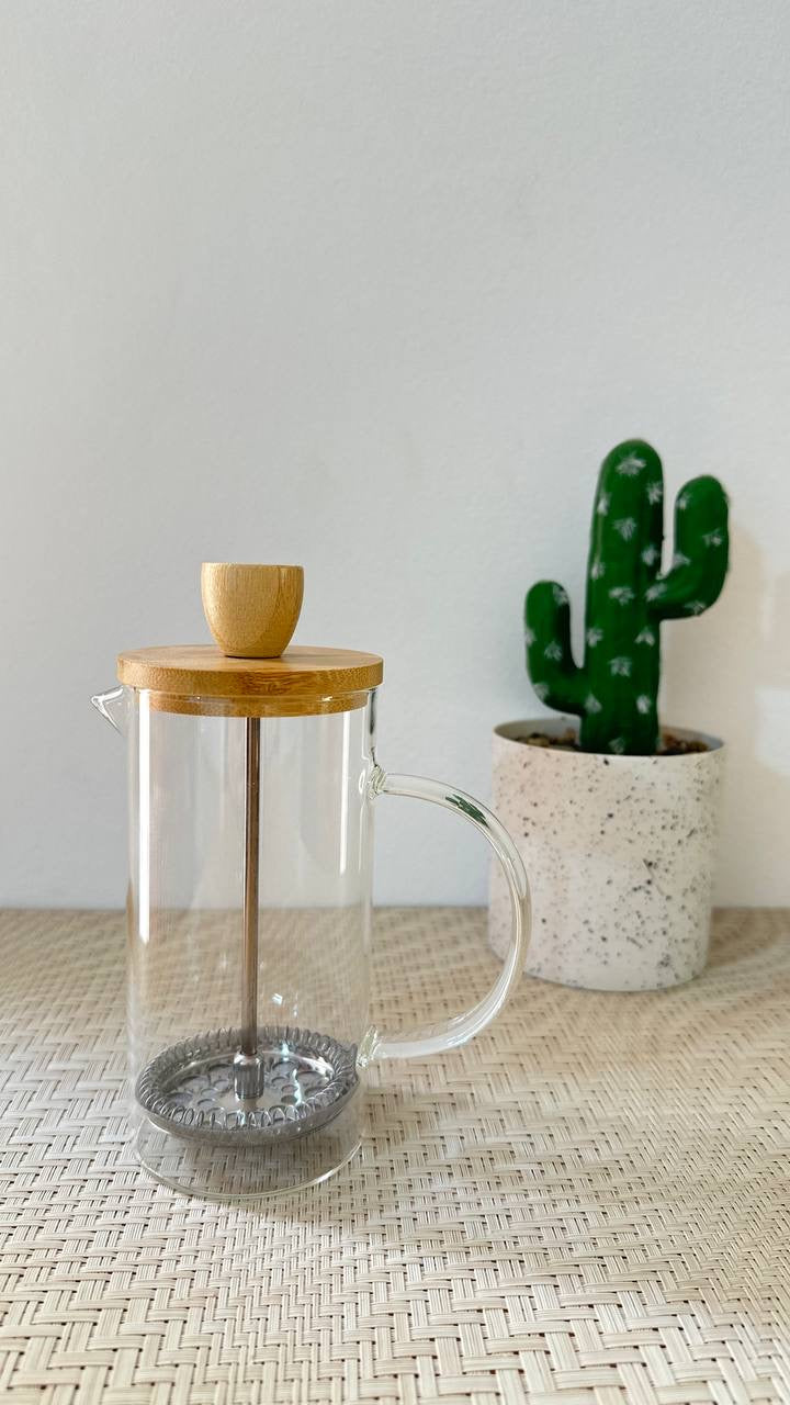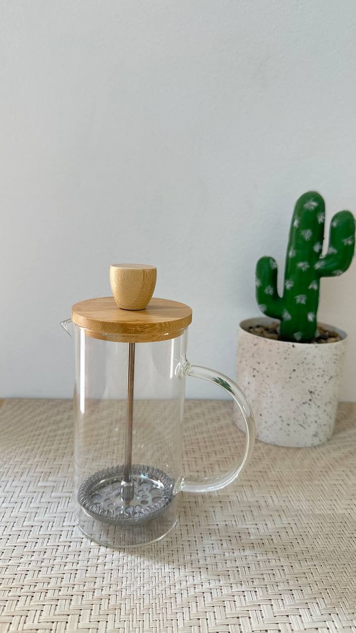 مكبس فرنسي كلاسيكي وعملي، مثالي لتحضير قهوة غنية ومركزة أو شاي مُنقع بفضل نظام الضغط والفلترة الشبكي. يتميز بتصميم زجاجي حراري وغطاء خشب أنيق.
