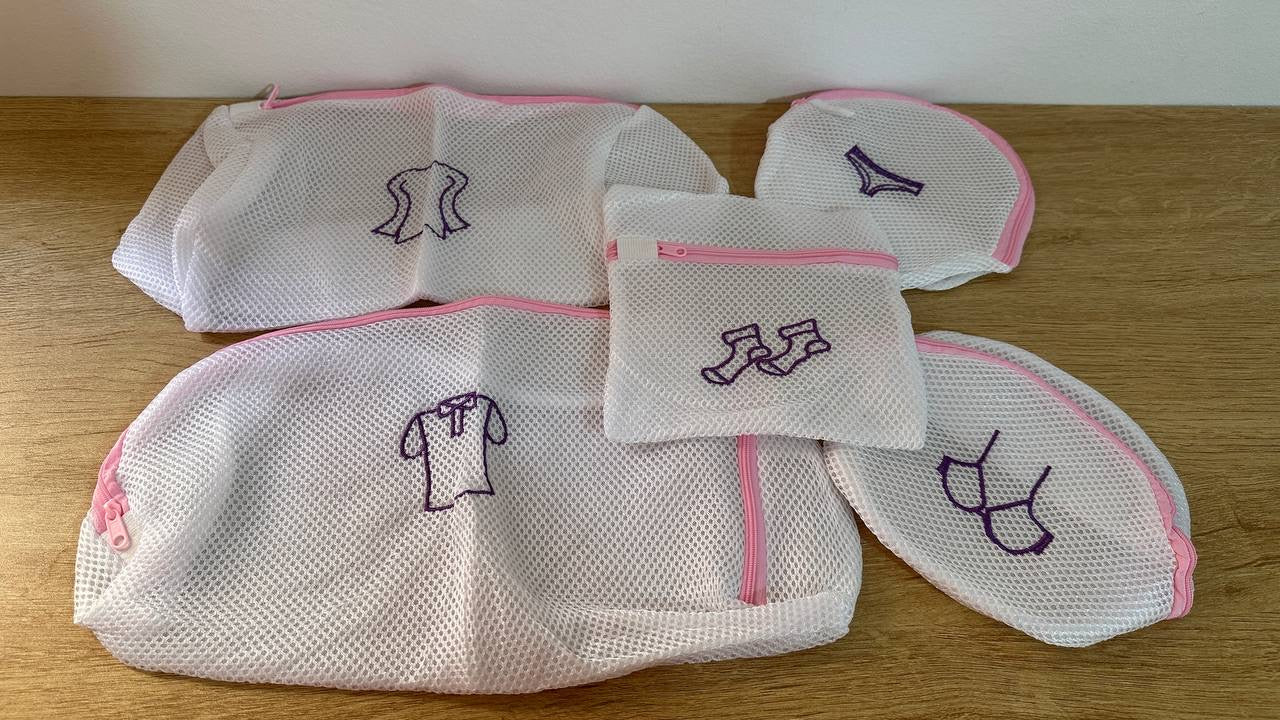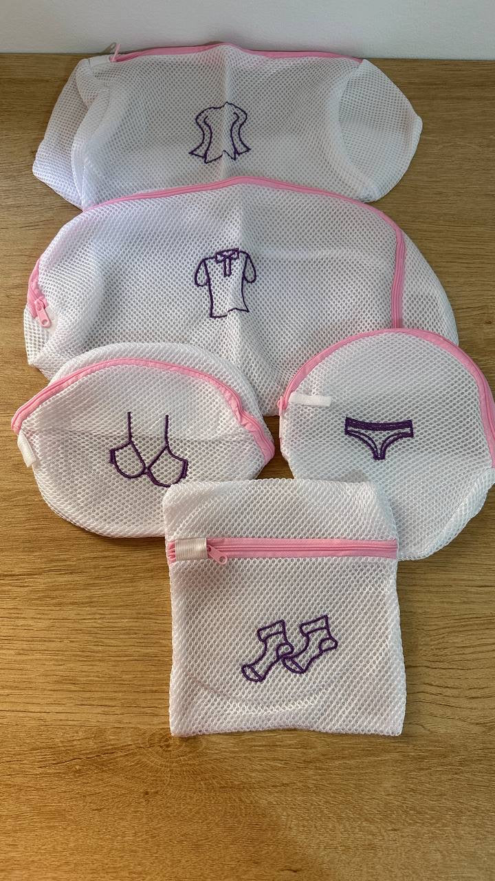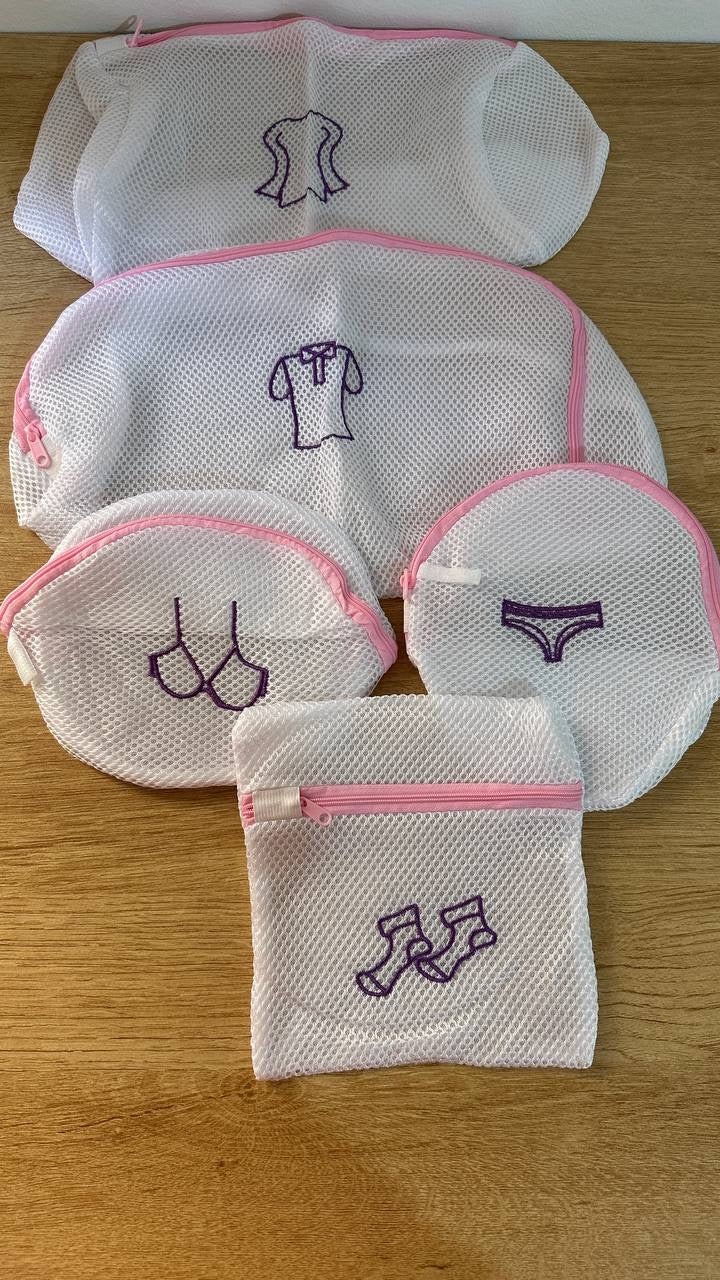 مجموعة من خمسة (5) أكياس غسيل شبكية بأحجام وأشكال مختلفة.