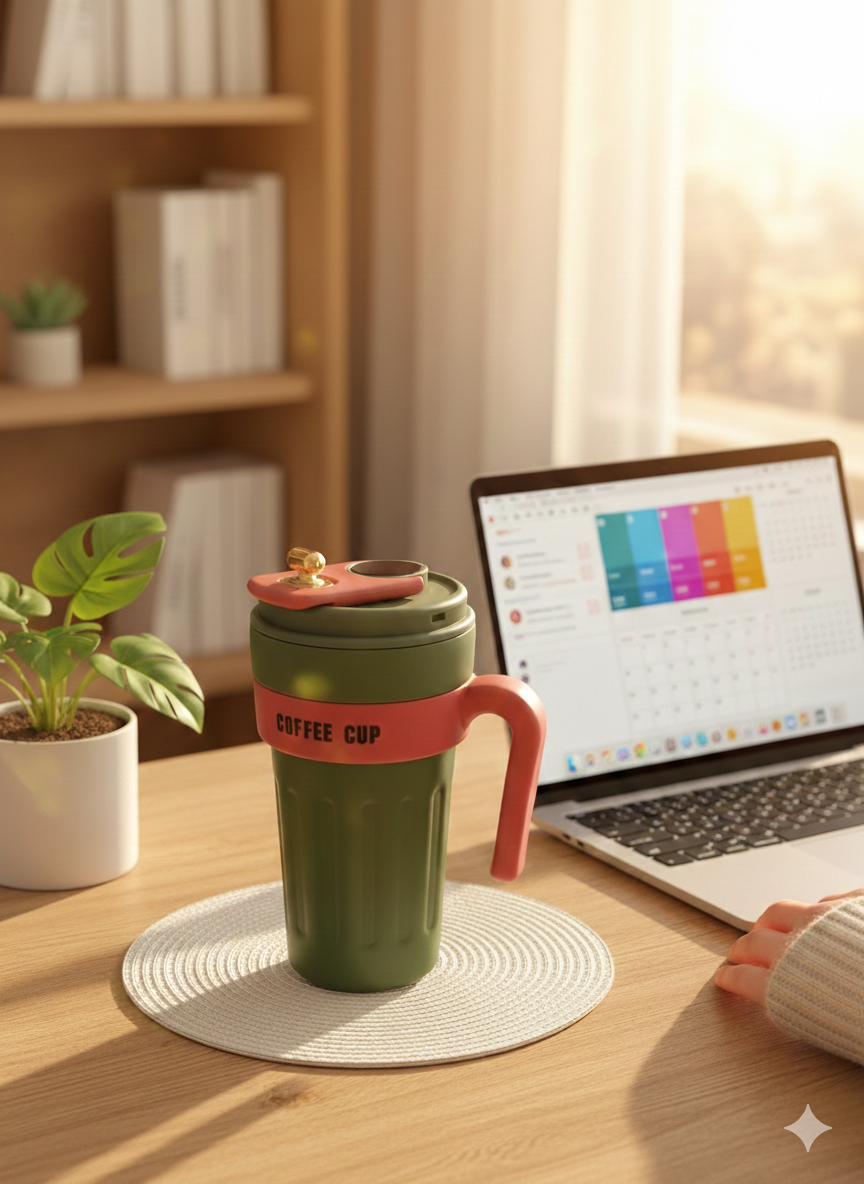 صُمم هذا الكوب الحراري ليكون الرفيق المثالي ليومك المزدحم، حيث يجمع بين الأناقة الفائقة والأداء العملي. سواء كنت في طريقك للعمل، في الجامعة، أو حتى في نزهة خارجية، يضمن لك هذا الكوب بقاء مشروبك بالحرارة المثالية التي تحبها.