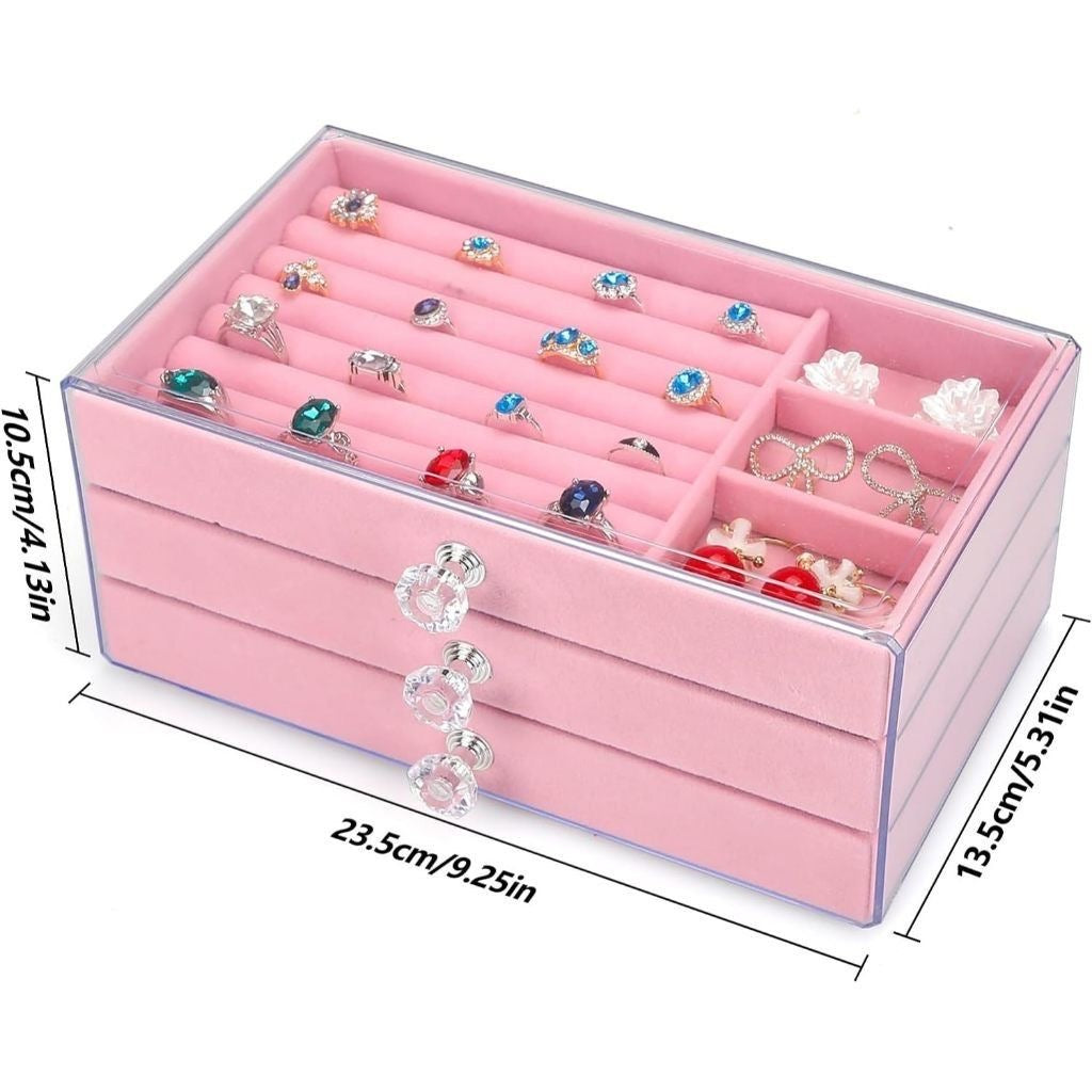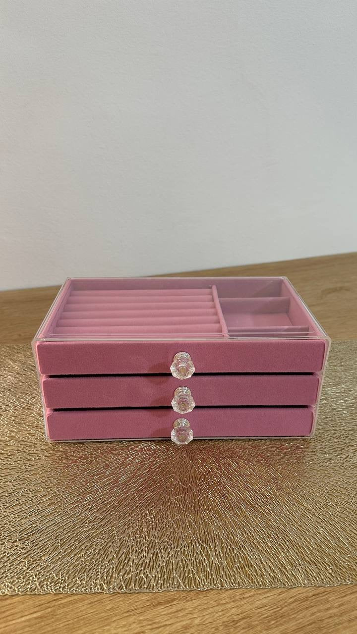 منظم اكسسوارات 3 دور اكريليك من الخارج وقطيفه من الداخل متقسم بطريقه ذكية لمساعدتك علي تنسيق اكسسواراتك ( خواتم , ساعات , حلقان, سلاسل )وترتيبهم والحفاظ عليهم من الاتربه او الضياع و البهدله