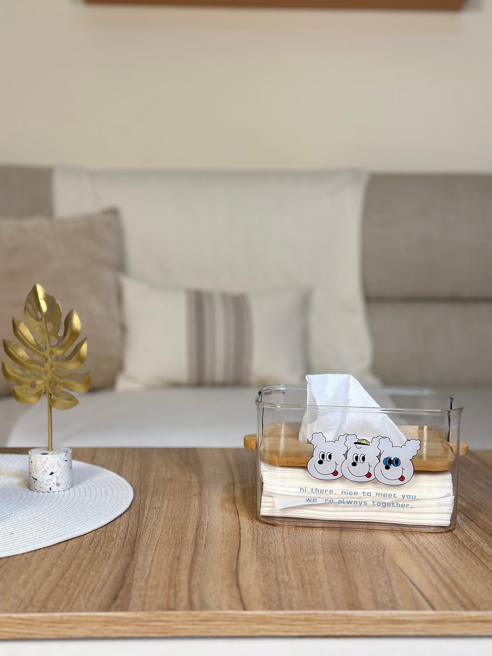 ارتقِ بديكور منزلك أو مكتبك مع صندوق المناديل الفاخر هذا. يجمع التصميم بذكاء بين الجزء الاكريليك والغطاء الخشبي الدافئ ليمنحك قطعة عملية وأنيقة في آن واحد.