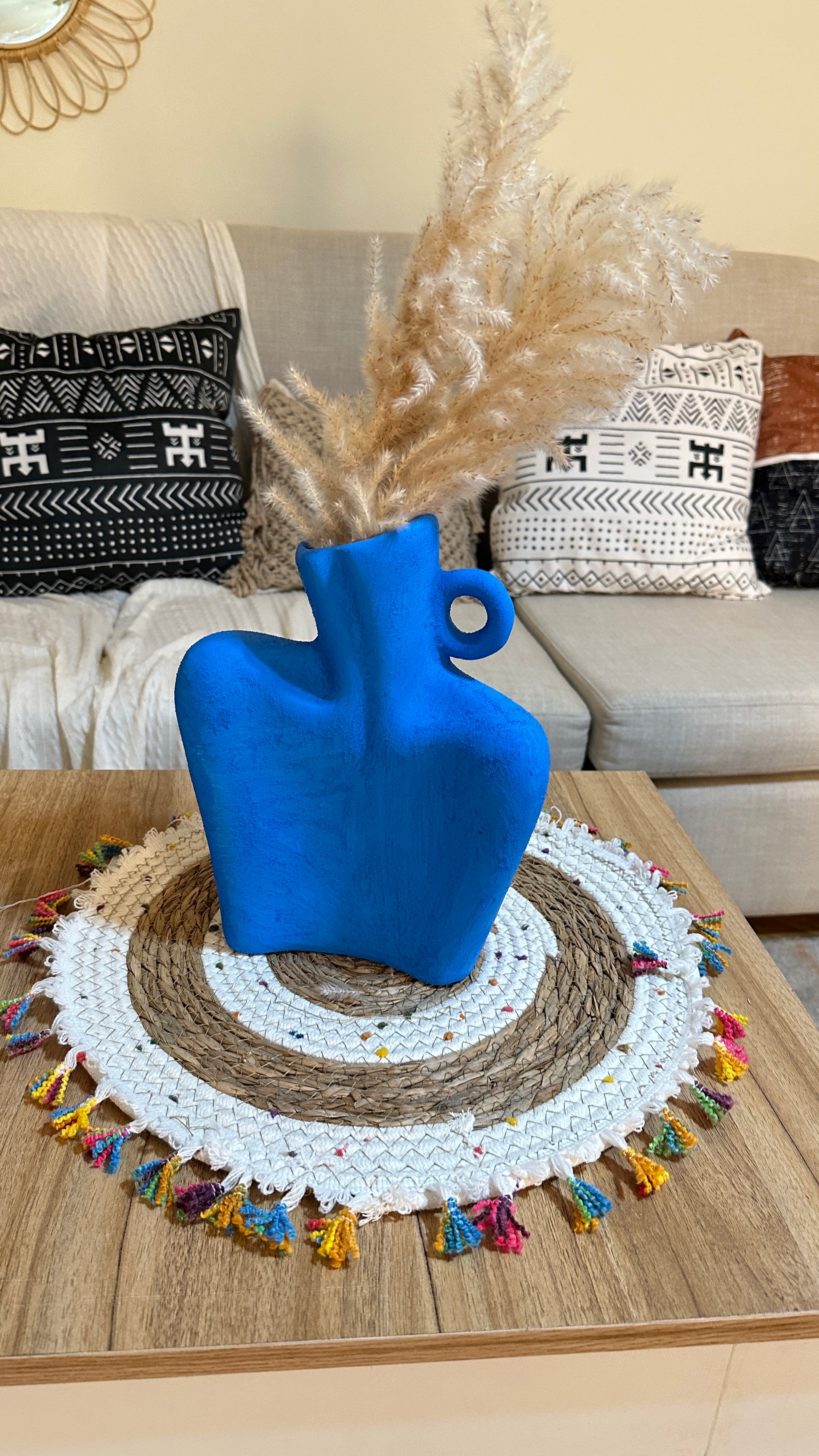 فازة فخارية باللون الازرق بالهيش