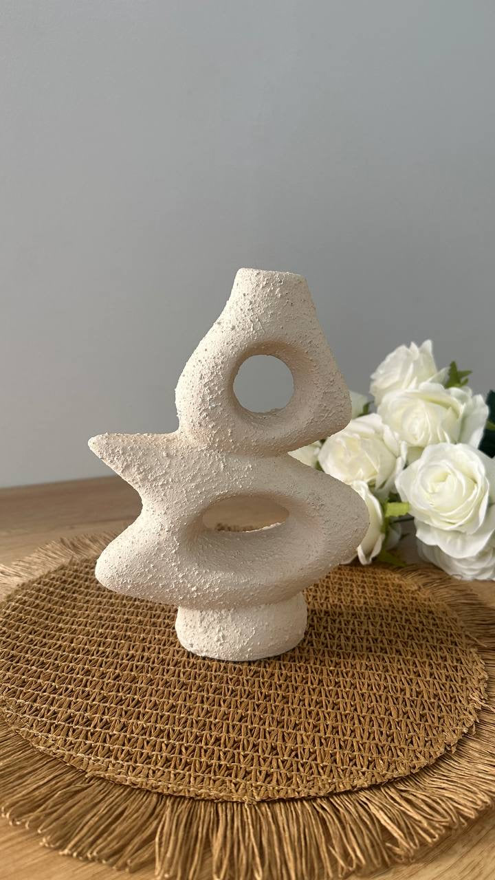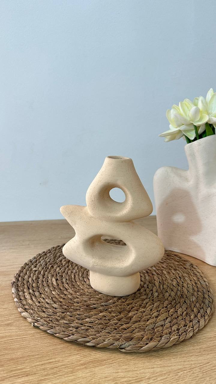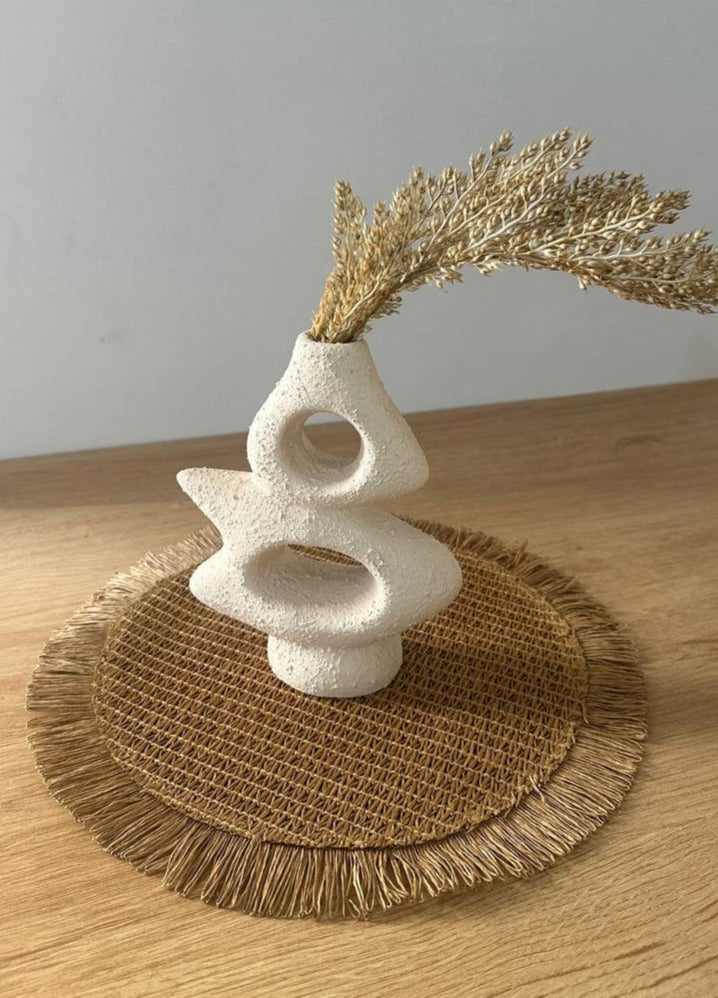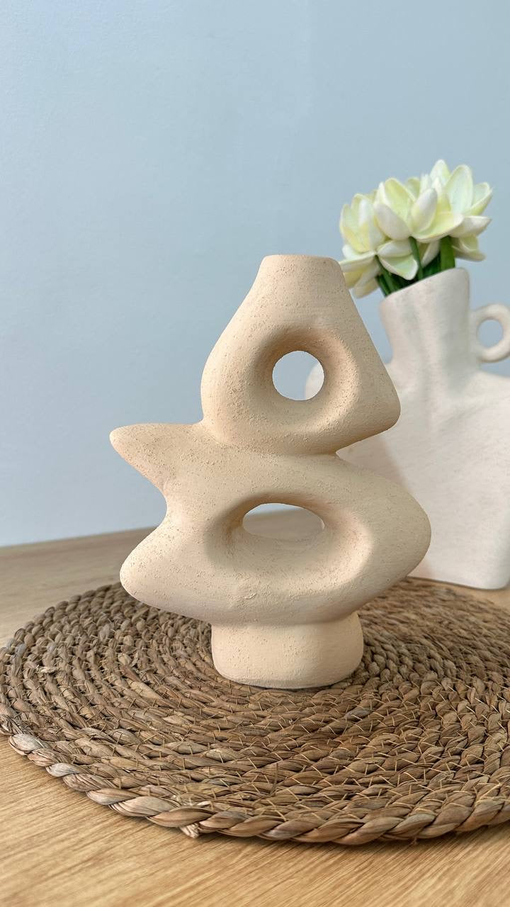 فازة فخارية غير منتظمة تتميز بملمسها الخشن والحبيبي. لونها الحيادي الهادئ يجعلها مناسبة لمختلف الديكورات.
